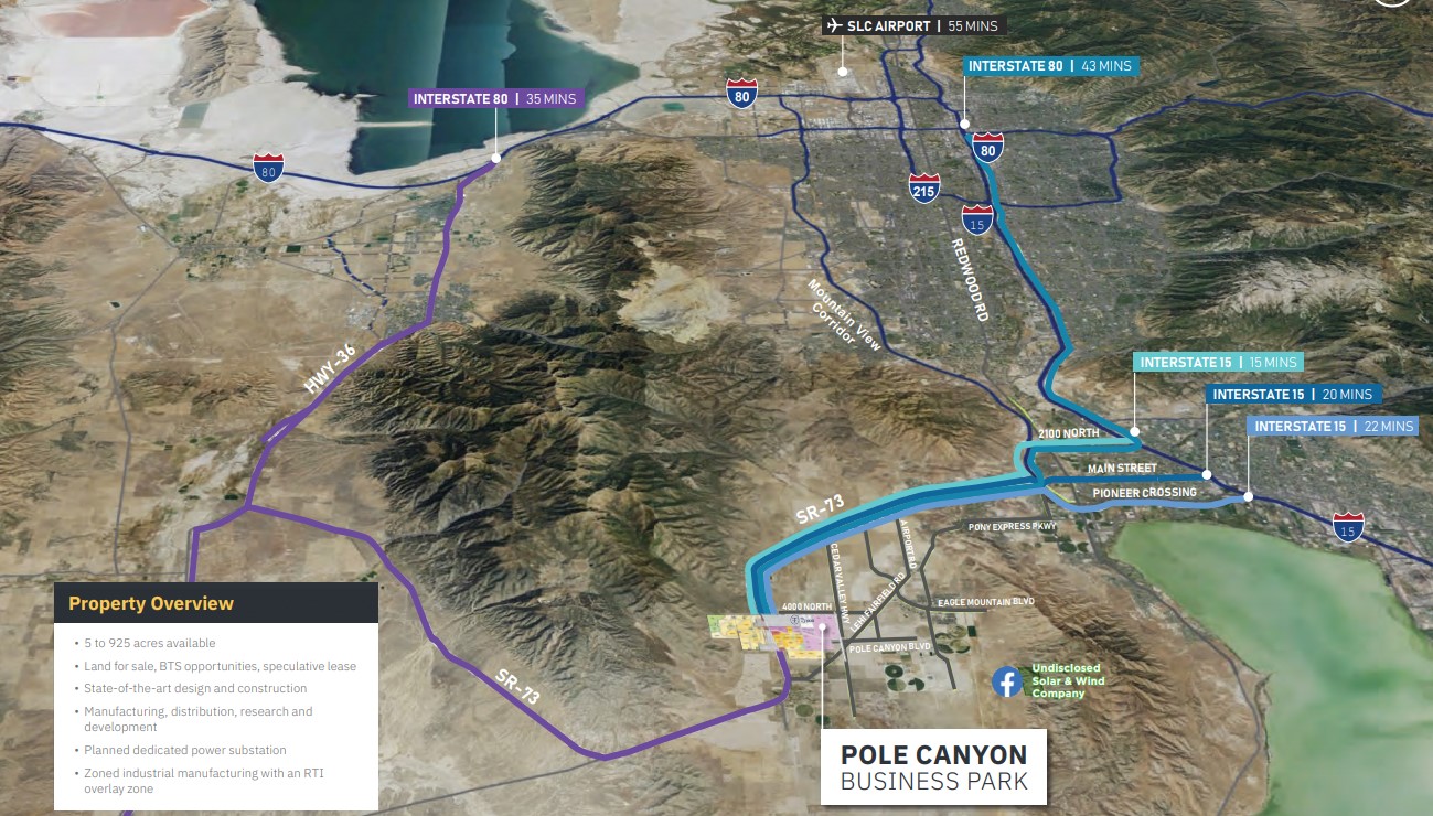 - 40 miles SW of Salt Lake City and 30 miles NW of Provo